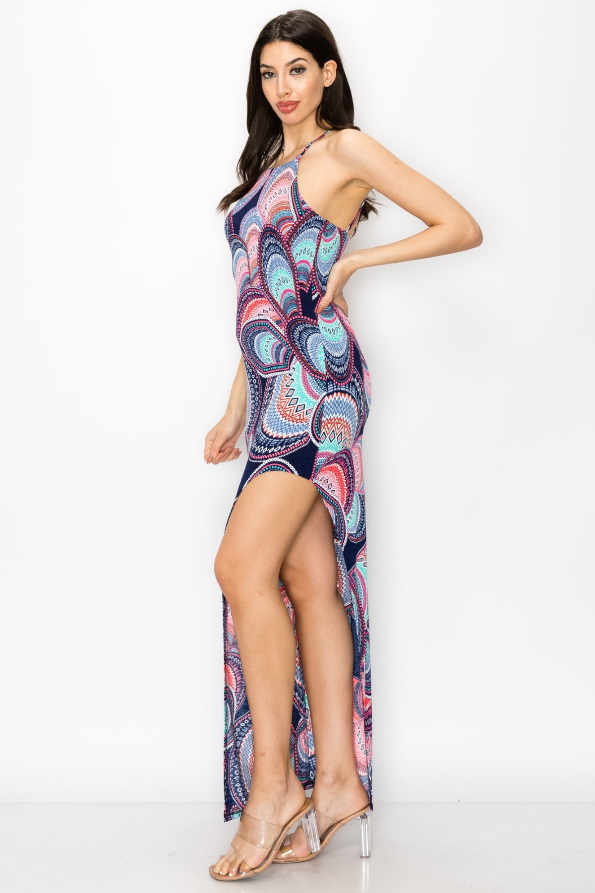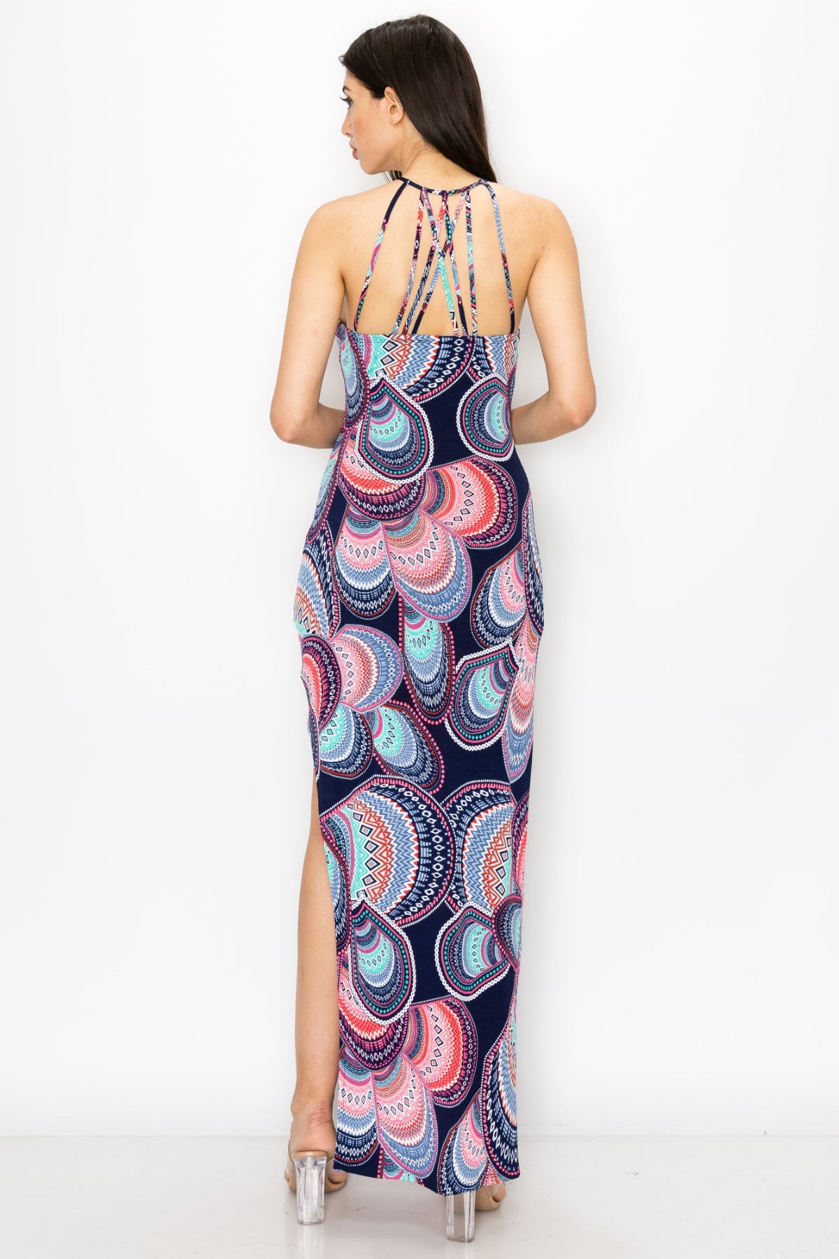 Strappy Back With Geometric Multi Circle Design Maxi Dress